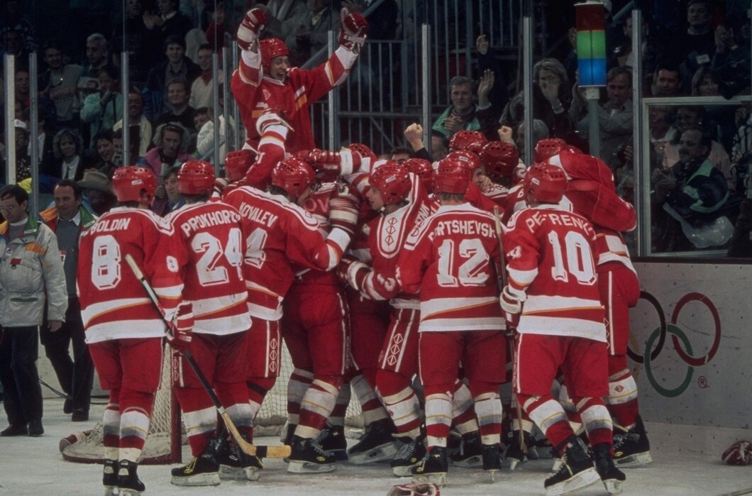 但刚刚东山再起的苏联队,却因政权解体,不得不消失在冰球赛场。1992年2月,冬奥会在法国阿尔贝维尔开幕,苏联队被独联体代表团所取代。这是苏联(独联体)队最后一次亮相国际比赛,球队依旧顽强闯入决赛。极具戏剧性的是,苏联(独联体)队在半决赛和决赛的对手分别是美国队与加拿大队。
