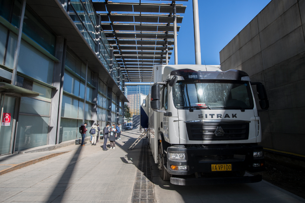 在场馆东侧,停放有一辆看似普通的白色厢式大货车,它的全称叫做“冬奥会冻伤及颌面创伤移动式智能化诊疗平台”,国家体育馆场馆医疗经理支德源习惯地称之为CT车。
