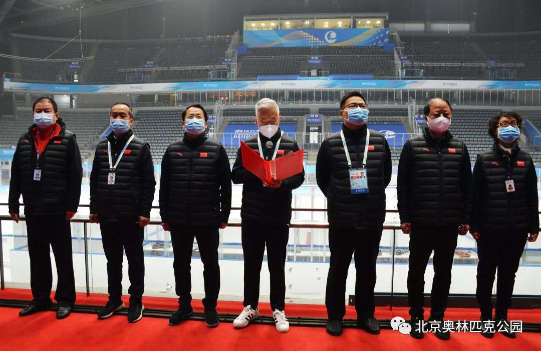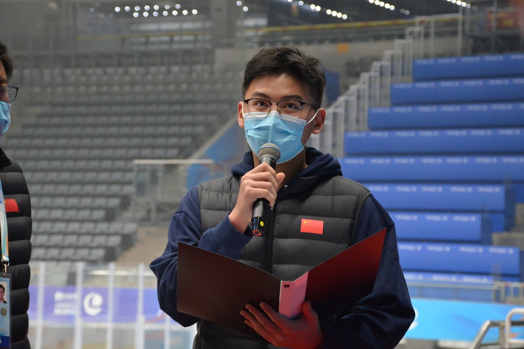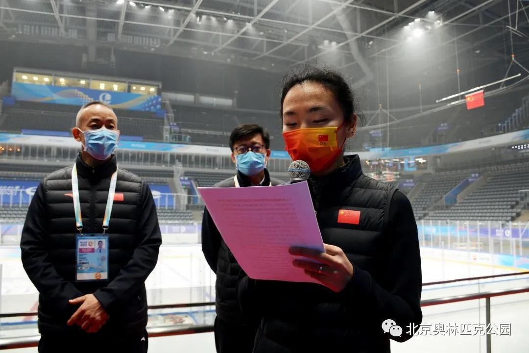 国家体育馆体育业务领域冰球协调员葛苑芃代表场馆工作人员发言:2022年冬奥时刻已经进入全面冲刺阶段,在剩下为数不多的日子里,国家体育馆运行团队将争分夺秒,并肩作战,攻坚克难,一切服从大局,严格落实防疫要求和纪律要求,不断提高工作执行力,守好红线底线,规范、有序、高效完成测试活动。